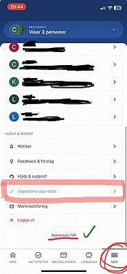 2. Uppdatera appen, logga ut och logga in igen.