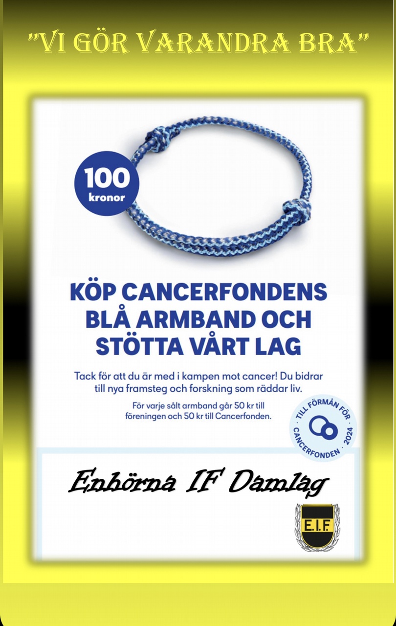 Stöd kampen mot cancer och stötta Enhörnas damlag genom att köpa Cancerfondens blå armband.